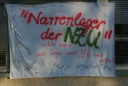 „Unbekannte“ erlaubten es sich, in der Nacht zum 1. Mai 2005 beim Wöhr, am Bahnübergang und am Rathaus verschiedene Banner anzubringen.