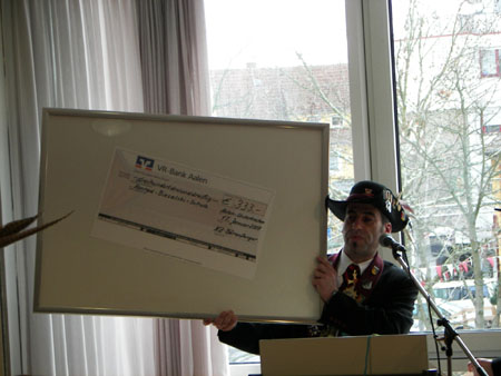symbolisch eine erste Rate für das neue Vereinsheim überreicht.