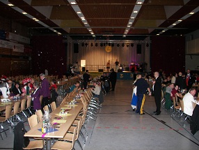 unserer Ankunft erwartete uns eine zu 1/3 gefüllte, kaum dekorierteHalle,