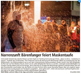 Friedens". Die traditionelle Maskentaufe der Narrenzunft Bärenfanger